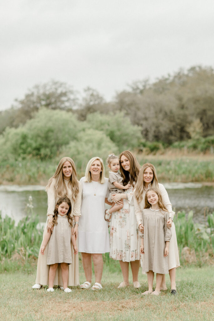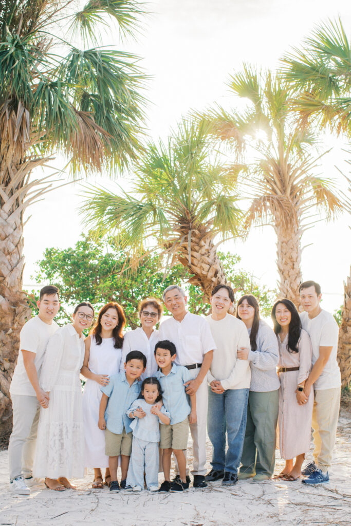 Extended family gathered for a portrait session in central Florida at golden hour.